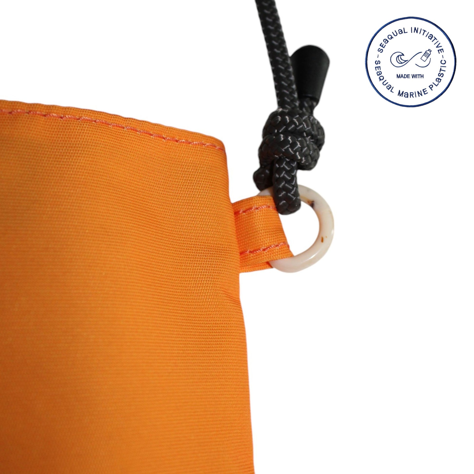 The Seaqual phone holder is made from 100% certified recycled polyester from SEAQUAL® MARINE PLASTIC . This fabric contains approximately 10% marine plastic waste and 90% is made from post-consumer PET sourced from land.