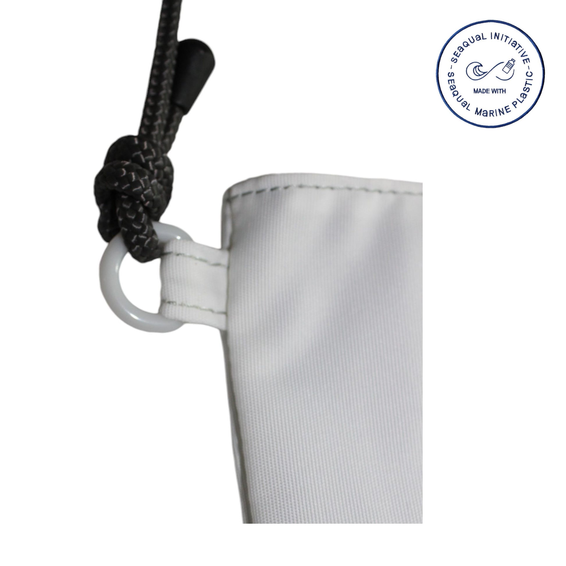 The shoulder strap is made from OceanYarn® polyester rope made from recycled plastic waste collected from the oceans. It is attached to D-rings in recycled plexiglass.