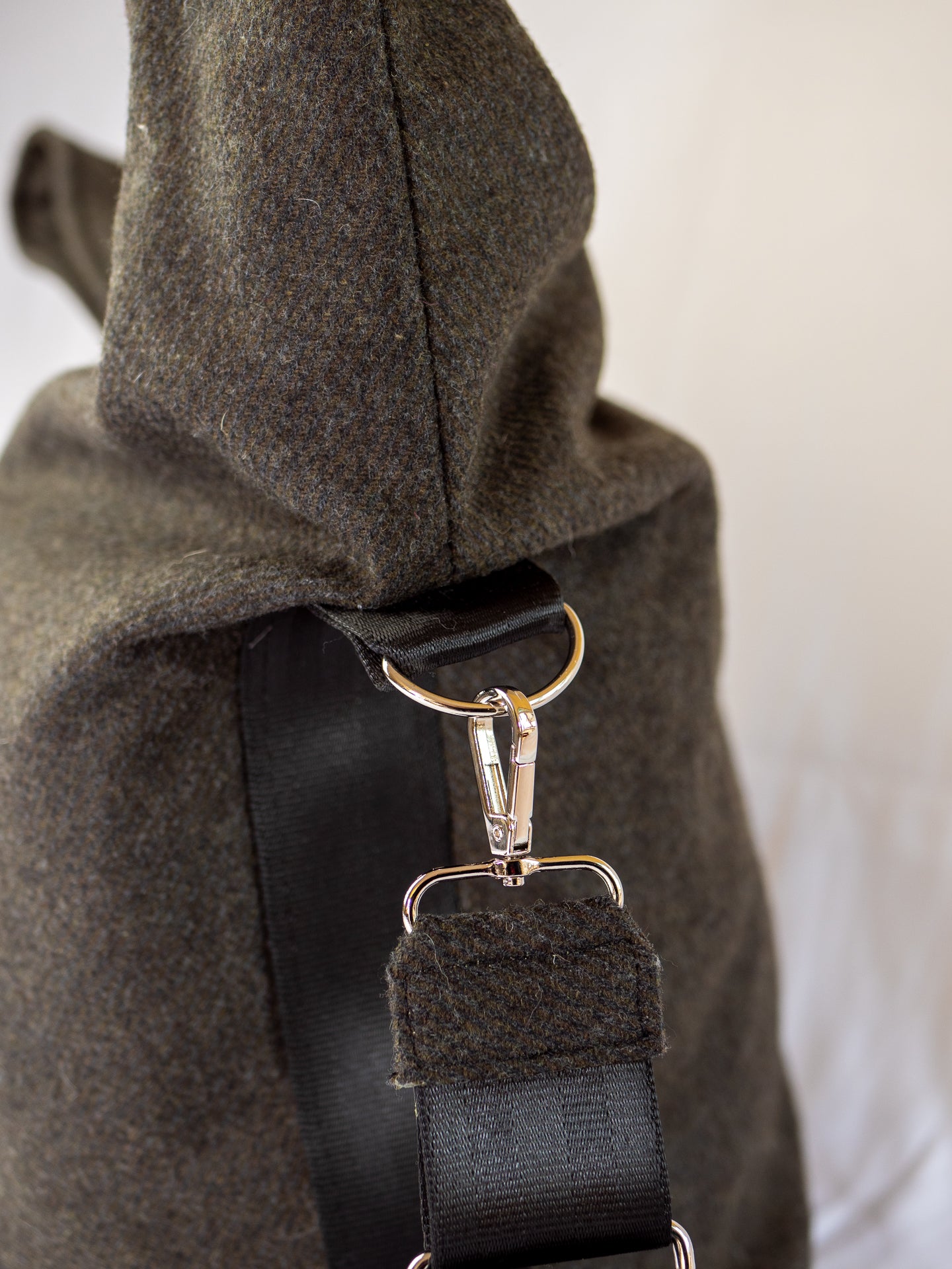 Roomy and wintery, the Forest sack is the oversized bag that contains everything you need throughout the day. Closure with buckle and loop made from a leather belt and two snap buttons, the Forest sack, inside, is lined in dark gray and is equipped with a key hook and two pockets for your cell phone and small objects.
