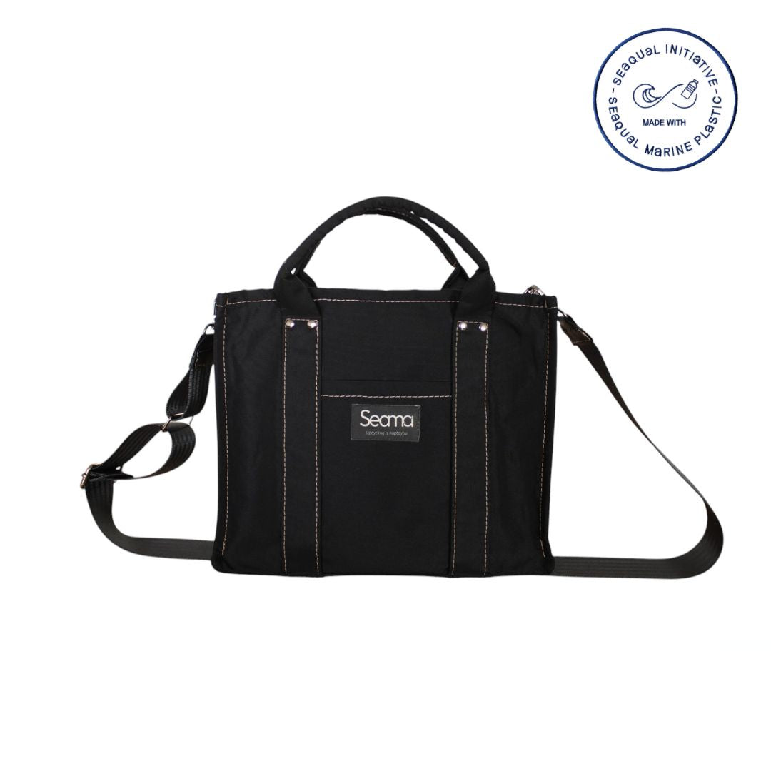 Made of 100% recycled polyester certified by SEAQUAL® MARINE PLASTIC, the Deep Tote is the sustainable bag that combines Italian style and responsibility towards the environment around us. Can be carried by hand or with the adjustable black shoulder strap, the medium Ischia Tote has a zip closure, an external pocket for your mobile phone and an internal one for small objects. It also features an internal bottle holder created with a black elastic band.