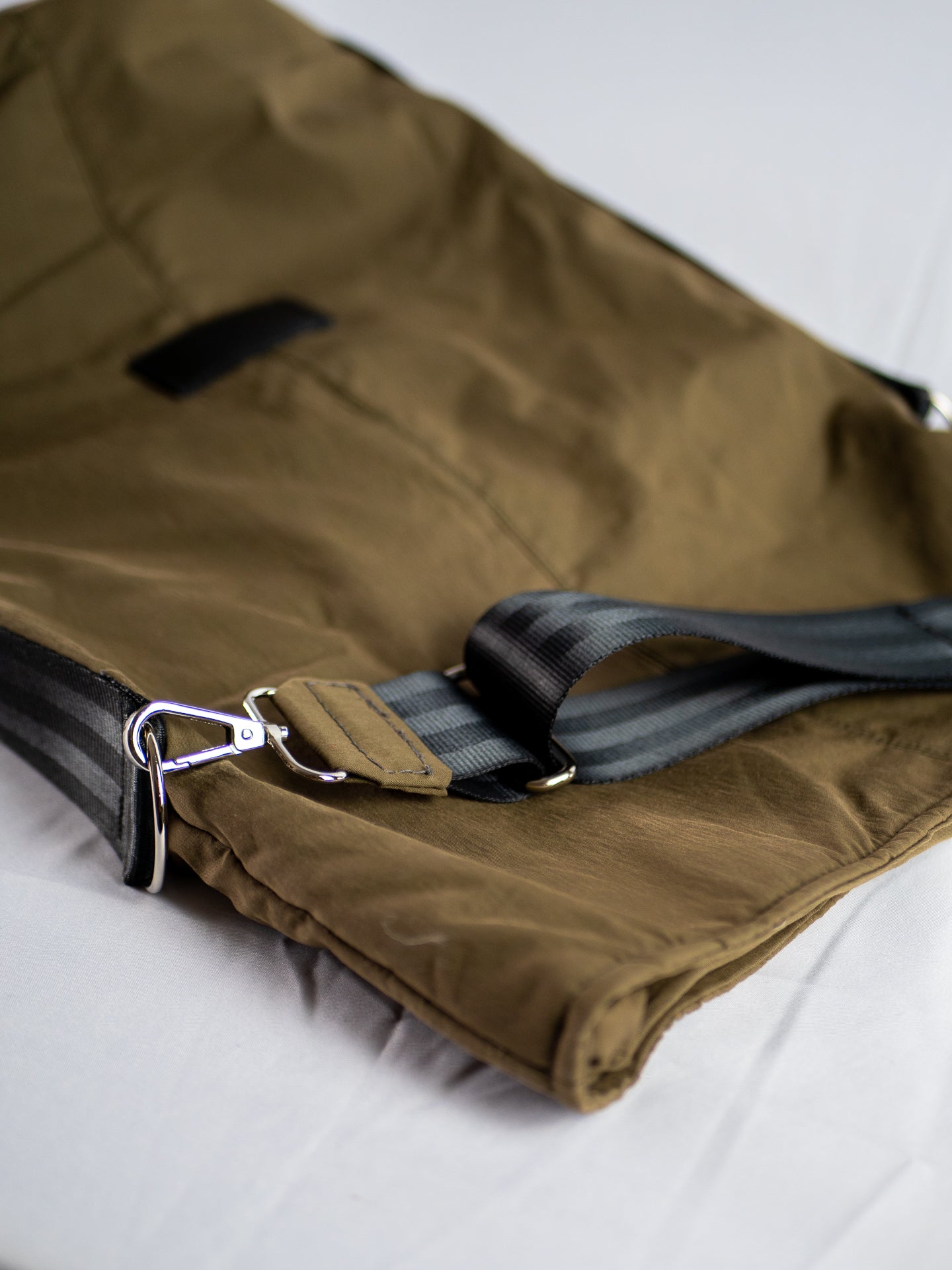 Classique et imperméable, le sac Rain 2 est le compagnon idéal pour vos déplacements. La fermeture est réalisée avec deux boutons-pression et une boucle avec passants créés à partir d'une ceinture pour homme en cuir. À l'intérieur, il est doublé en beige et dispose d'un crochet porte-clés ainsi que de deux poches pour votre téléphone et petits objets.