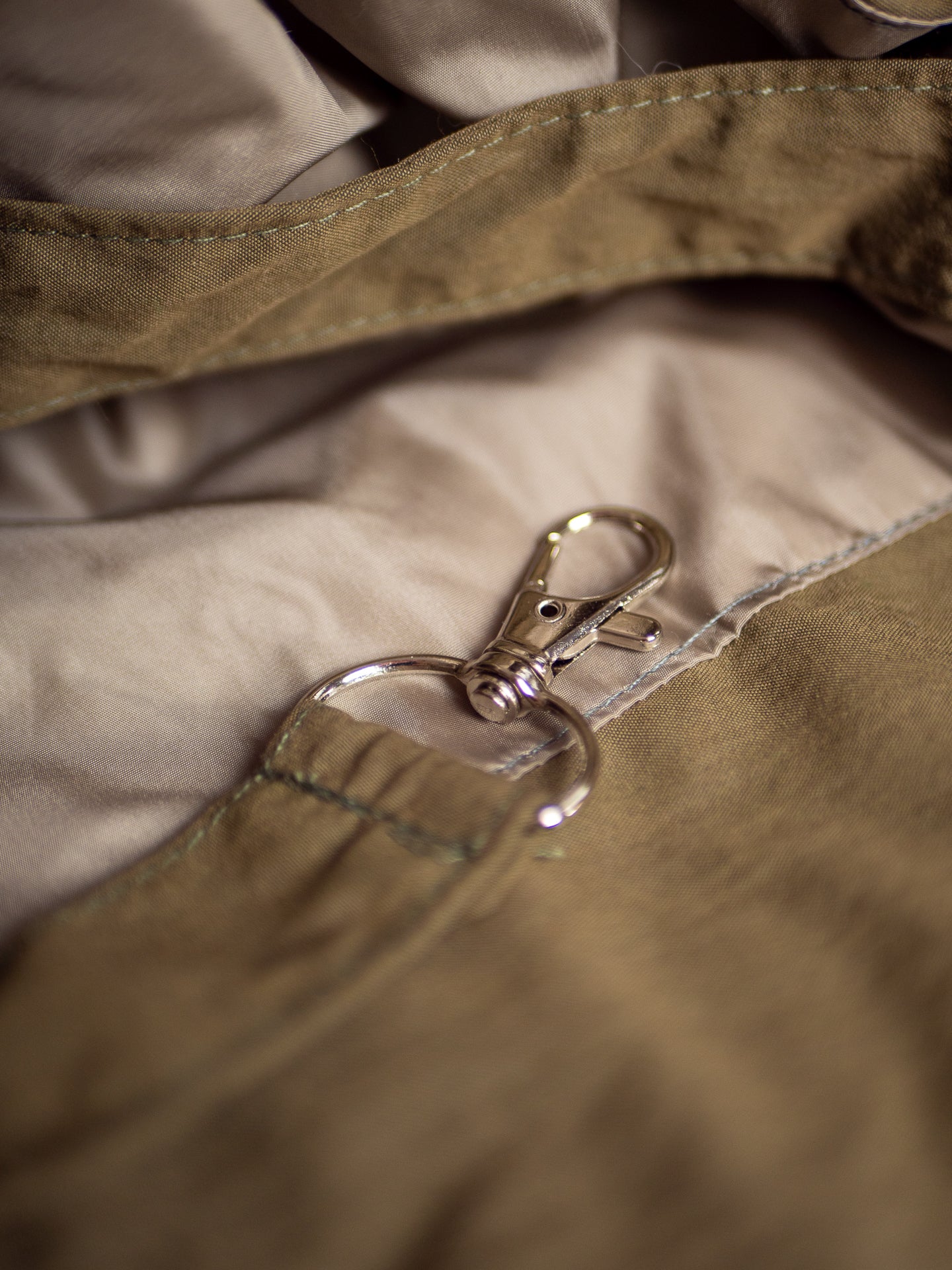 Le sac Rain 2 a été éco-conçue à partir d'un imperméable pour femme. C'est le jumeau du sac Rain, mais avec une couture centrale.