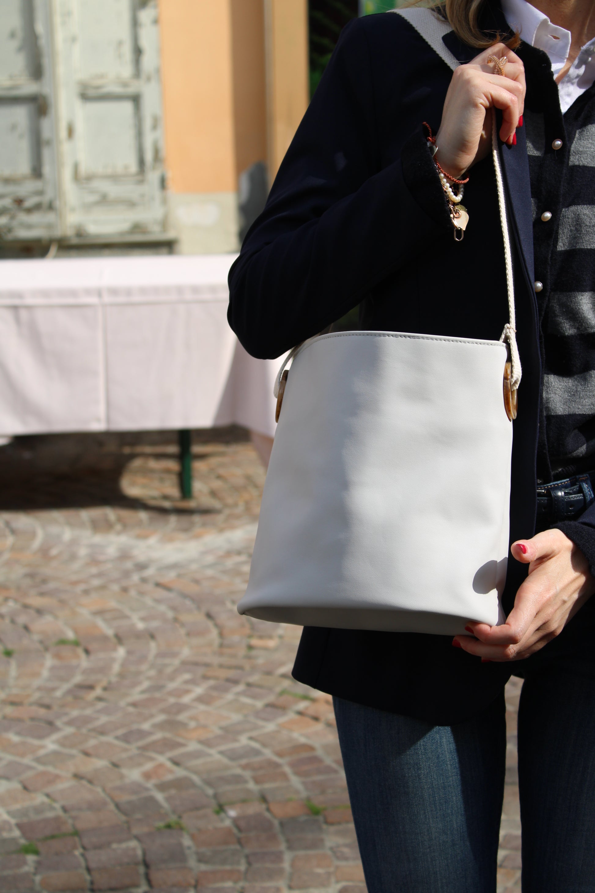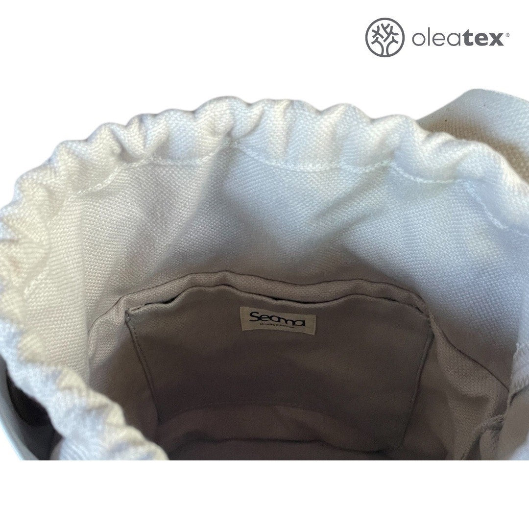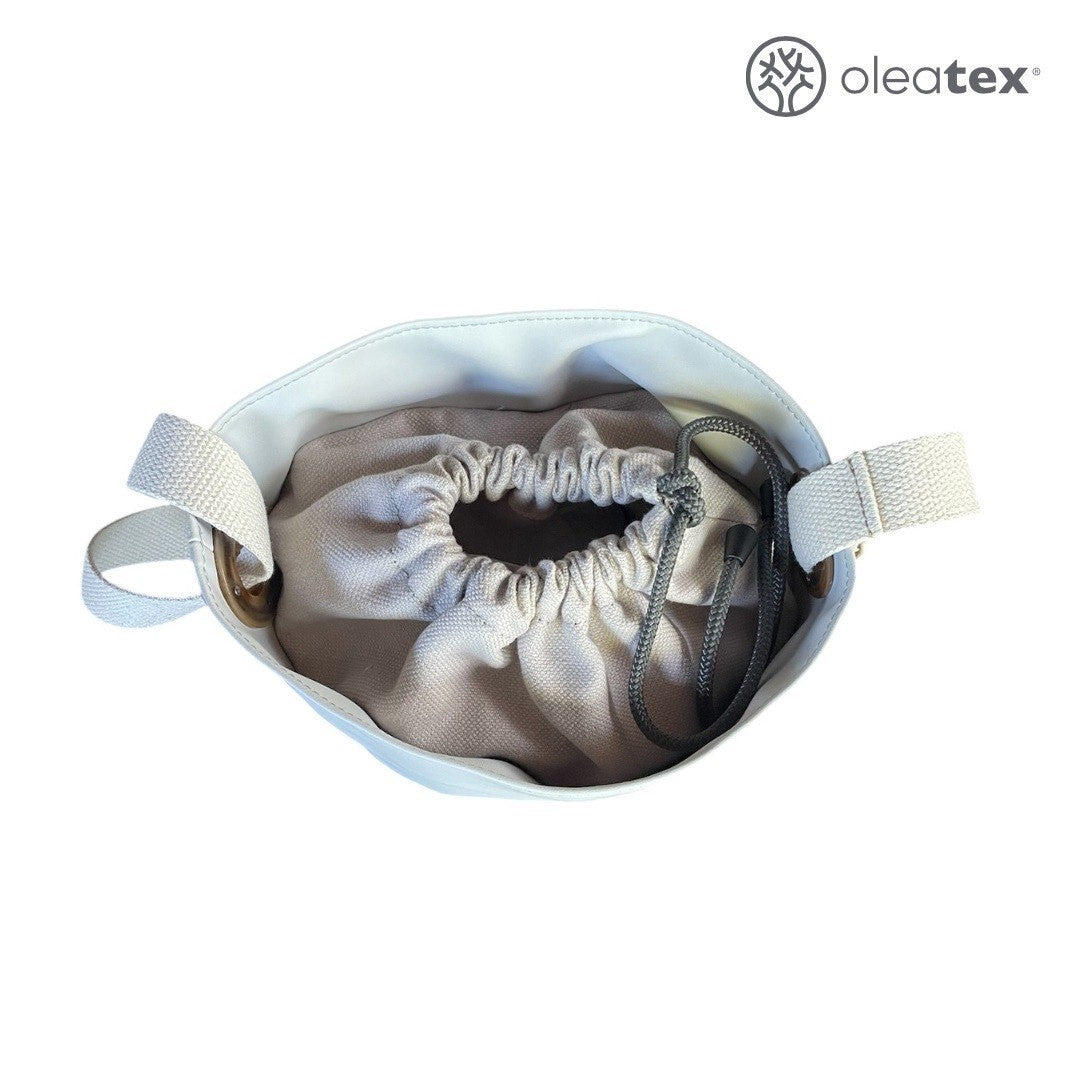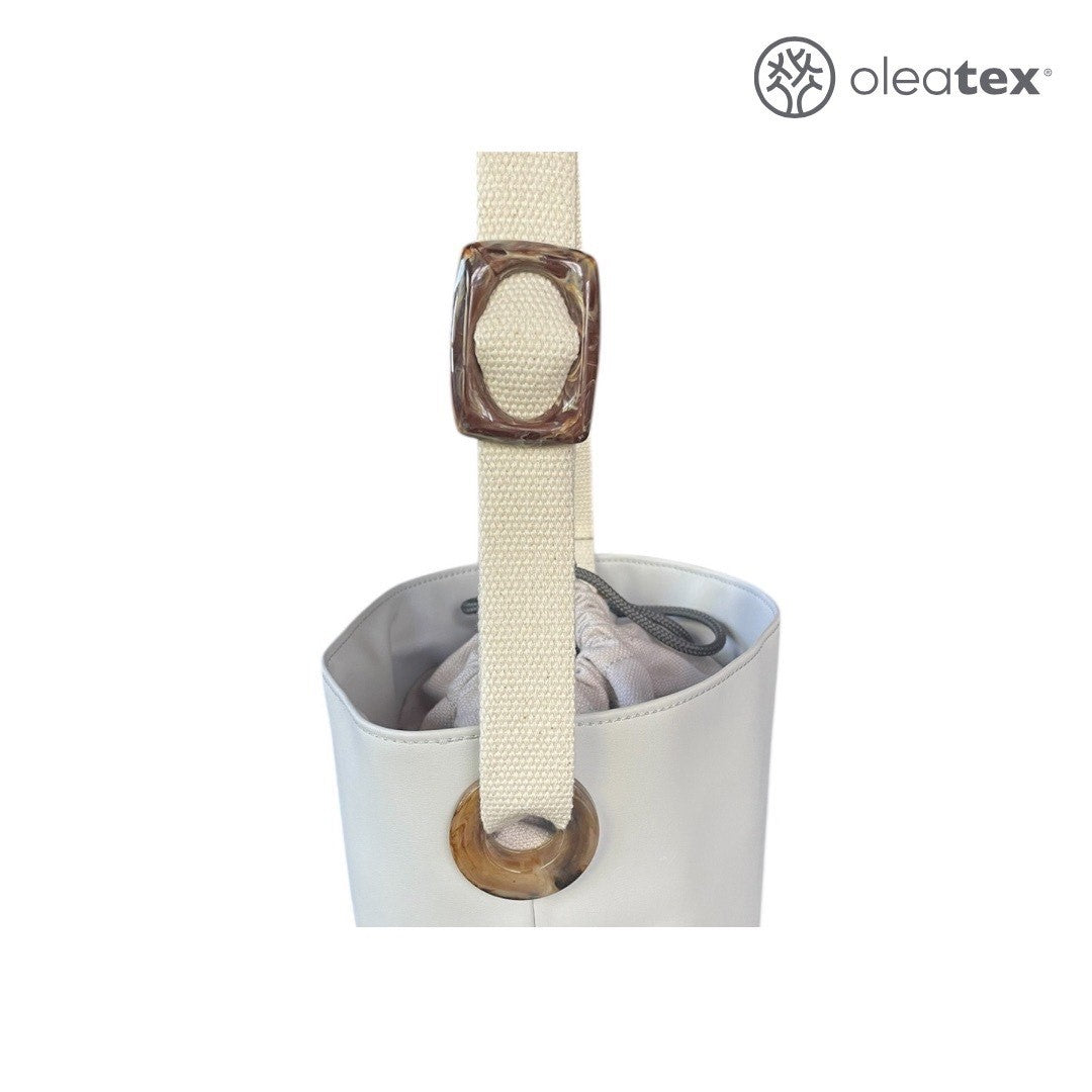 Realizzata in ecopelle innovativa, Oleatex, ottenuta dagli scarti della lavorazione delle olive, questa borsa secchiello è dotata di tracolla regolabile in cotone riciclato e di tasca interna per piccoli oggetti. Il design morbido ma strutturato la rende perfetta per ogni giorno, mentre il materiale le conferisce una texture unica a un impatto ambientale ridotto. Un accessorio che illumina ogni look e che racconta una nuova idea di moda: consapevole, etica e naturalmente elegante.