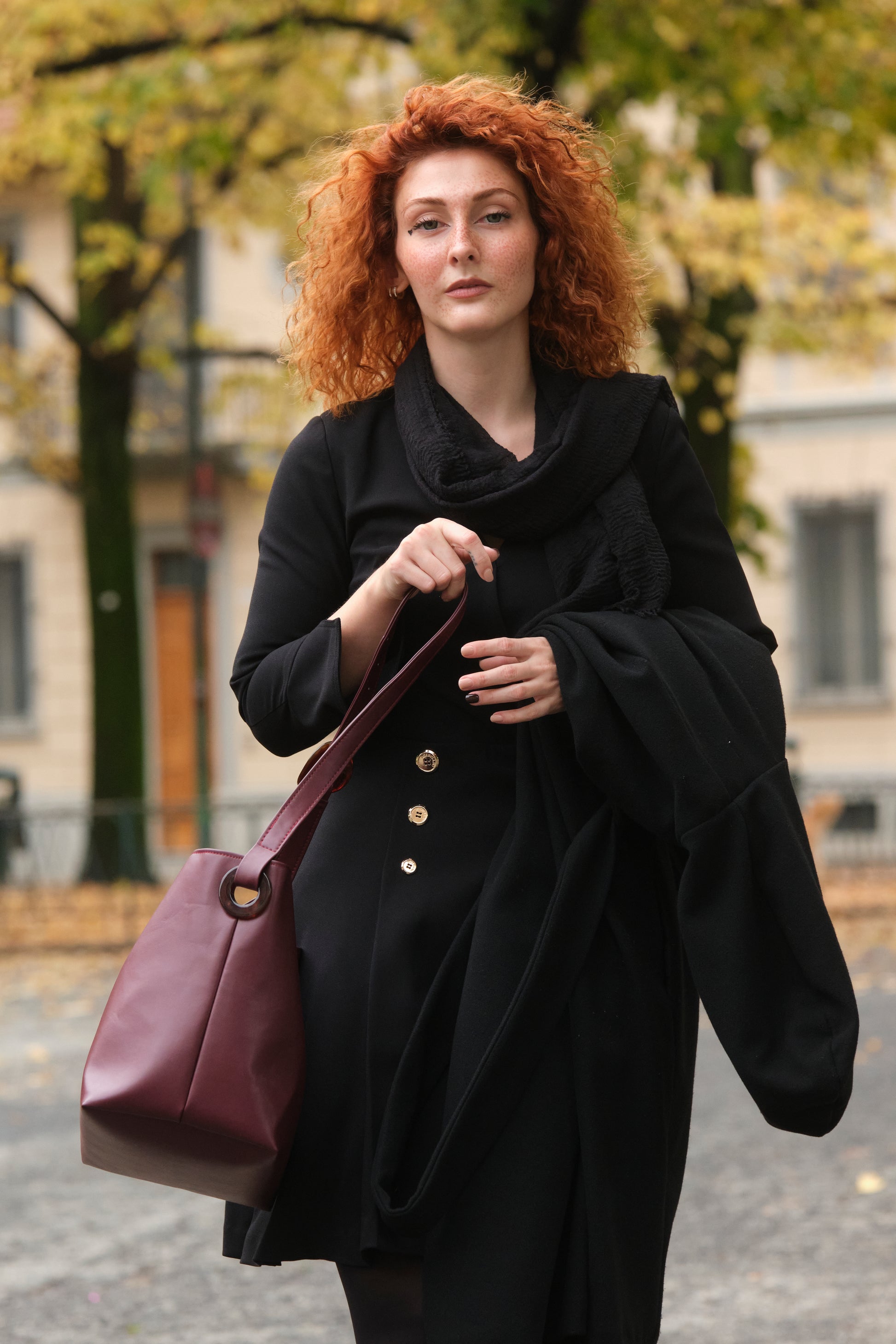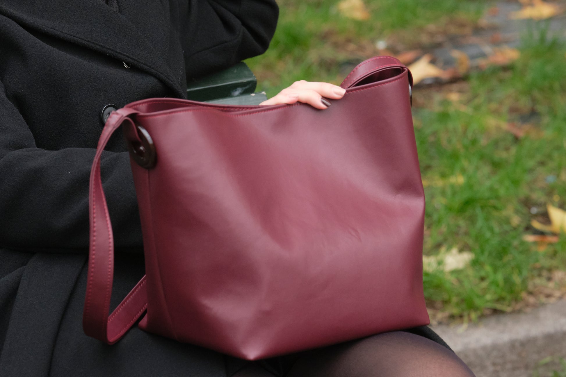 Stile minimalista, ma di carattere, la borsa Luisa trasmette un messaggio forte attraverso la semplicità, l'eleganza sobria e raffinata. Ispirata alla rinascita come il suo materiale: ecopelle, Vegea, prodotta dallo scarto della produzione del vino. La borsa Luisa è dotata di tracolla regolabile grazie ad una fibbia in plexiglass riciclato, chiusura con bottone automatico e tasca interna per contenere piccoli oggetti.