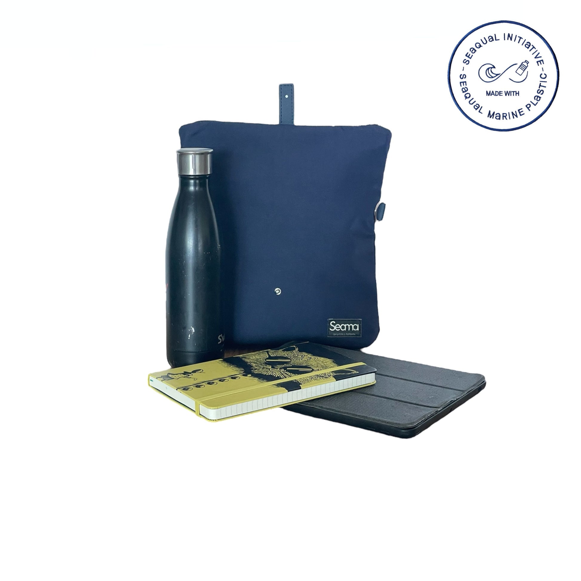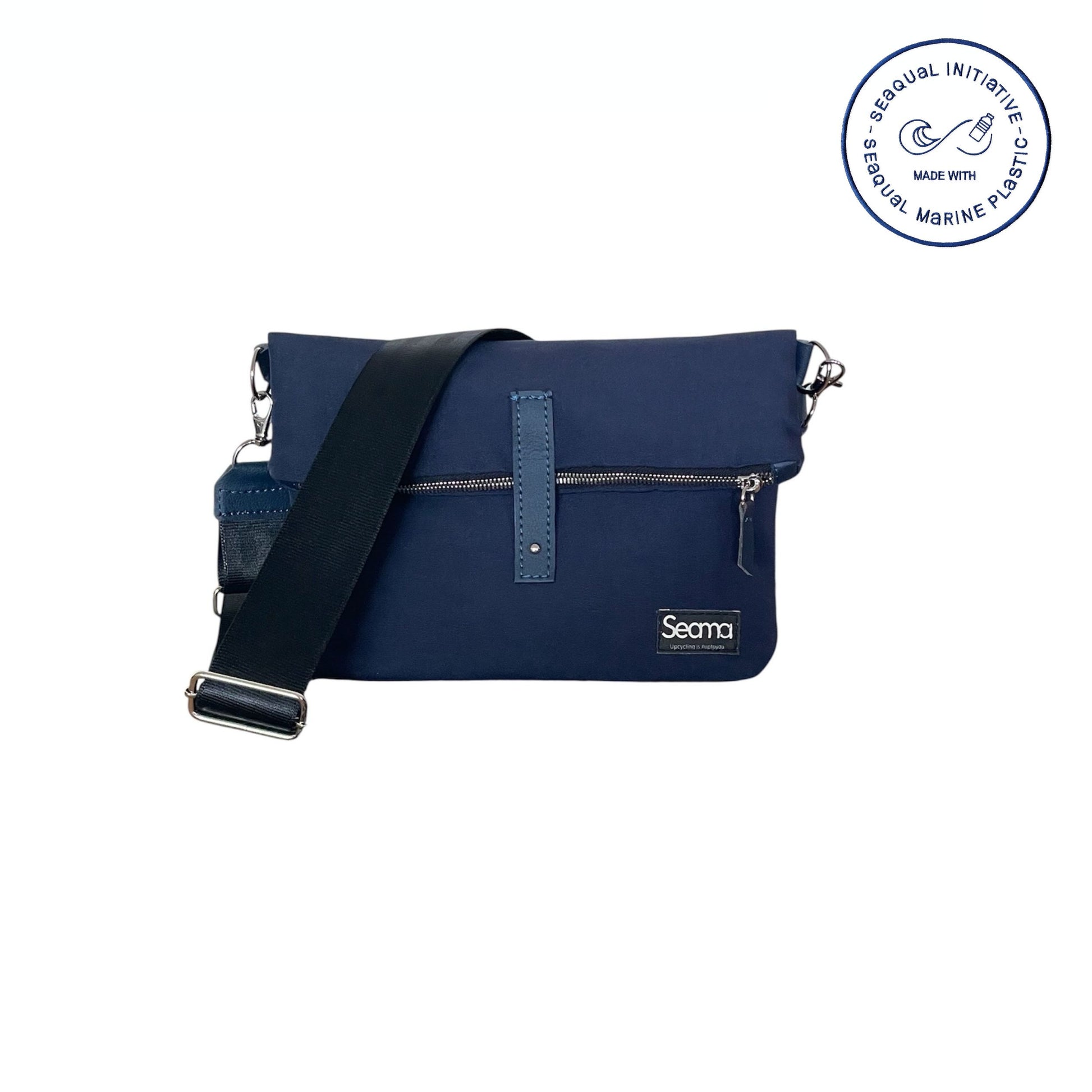 Compatta, pratica e dal design minimalista, questa borsa unisex è realizzata in 100% poliestere riciclato certificato SEAQUAL® MARINE PLASTIC, un tessuto sostenibile composto per circa il 10% da rifiuti marini in plastica e per il restante 90% da PET post-consumo proveniente dalla terraferma.