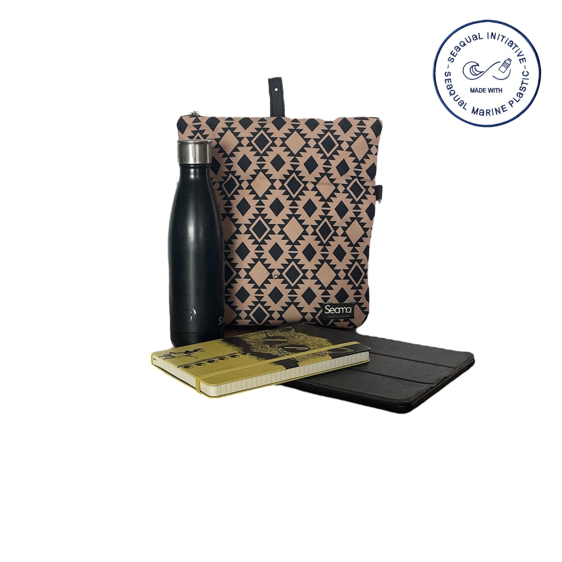 Compatta, pratica e dal design minimalista, questa borsa unisex è realizzata in 100% poliestere riciclato certificato SEAQUAL® MARINE PLASTIC, un tessuto sostenibile composto per circa il 10% da rifiuti marini in plastica e per il restante 90% da PET post-consumo proveniente dalla terraferma.