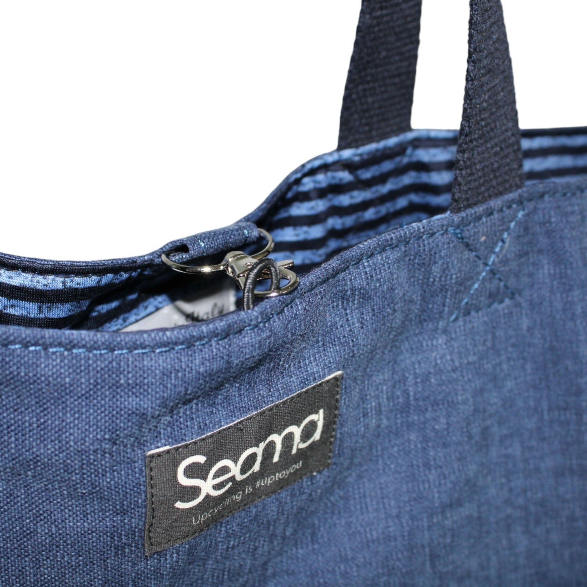 La prevalenza di materiali di recupero ed il processo di upcycling consentono di ridurre i consumi inerenti alla produzione e sottrarre tessuti alla discarica. Piccole imperfezioni non sono da attribuirsi a un difetto di fabbricazione ma alla particolarità del materiale e della produzione artigianale in upcycling.