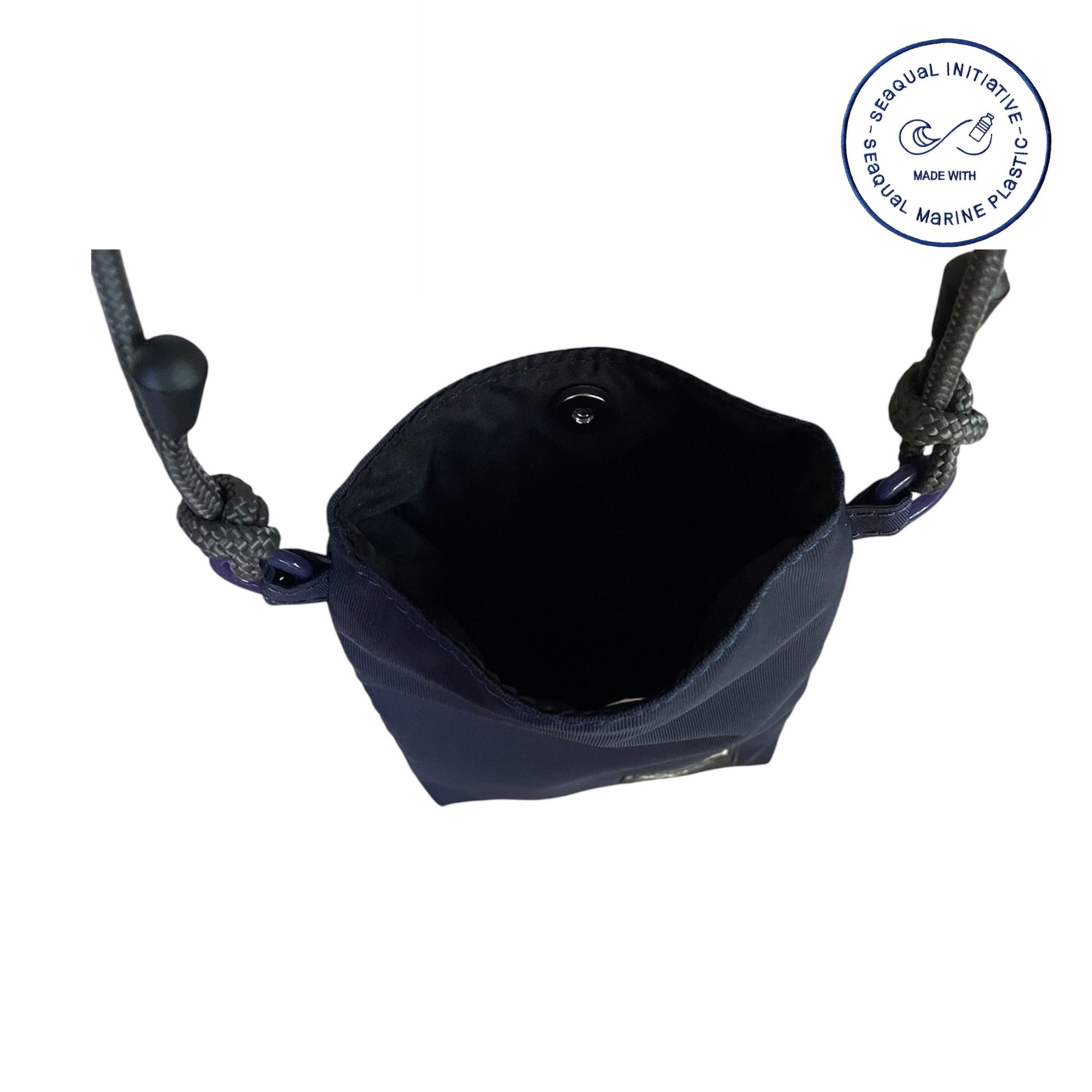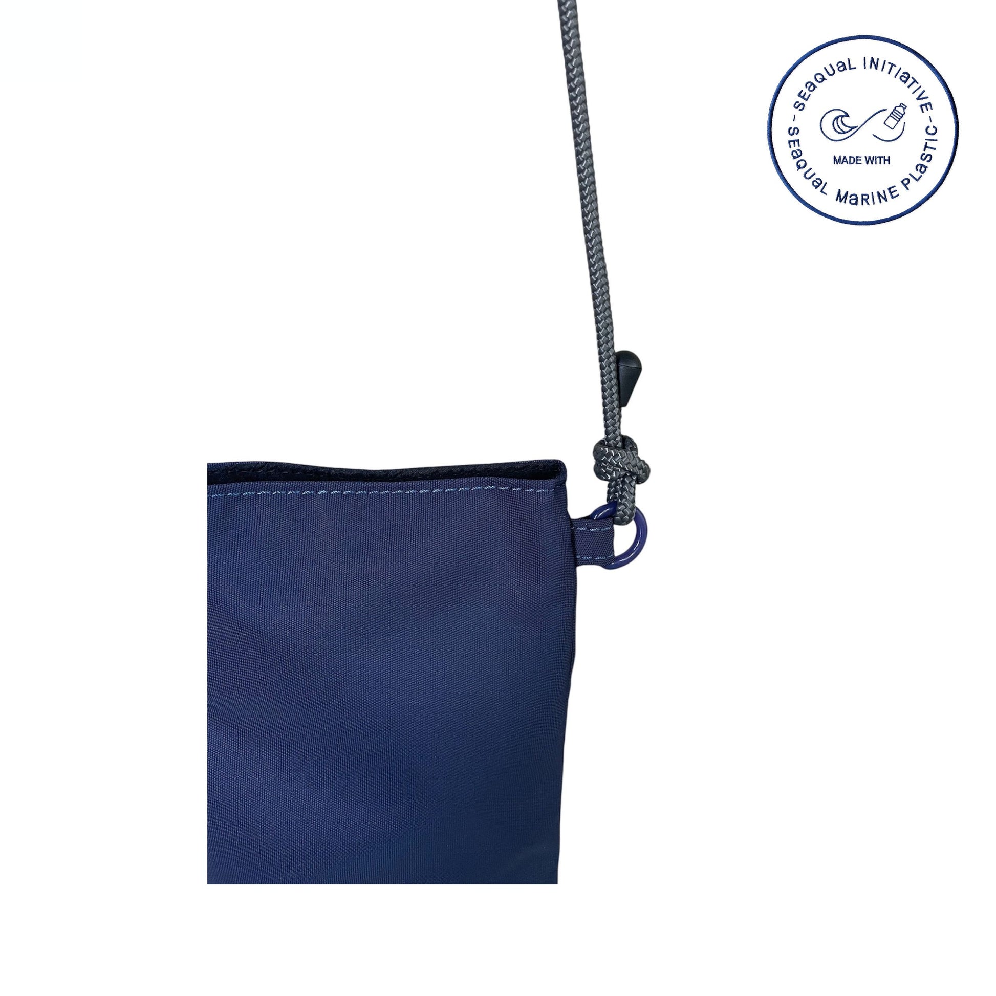 Il porta cellulare Seaqual è realizzato in poliestere riciclato al 100% certificato proveniente da SEAQUAL® MARINE PLASTIC. Questo tessuto contiene circa il 10% di rifiuti marini di plastica ed il 90% è costituito da PET post-consumo proveniente dalla terraferma.