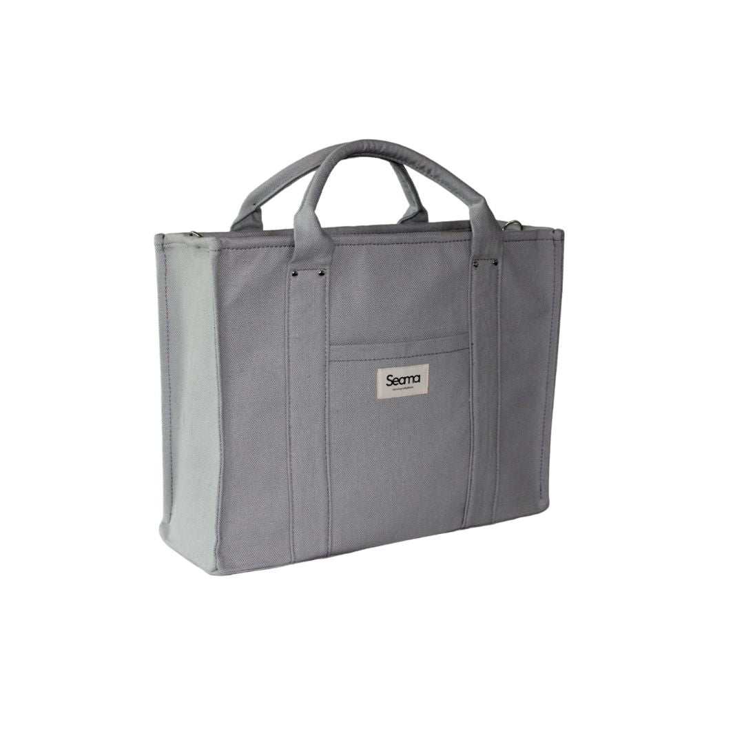 Capiente e resistente, la Tote Oslo grande può contenere anche il tuo laptop con un'eleganze contemporanea e raffinata. Può essere portata a mano o con la tracolla panna regolabile, la Tote Oslo grande ha una chiusura a zip, una tasca esterna per il cellulare e una interna per piccoli oggetti. E' anche dotata di un porta bottiglia interno creato con un elastico grigio.