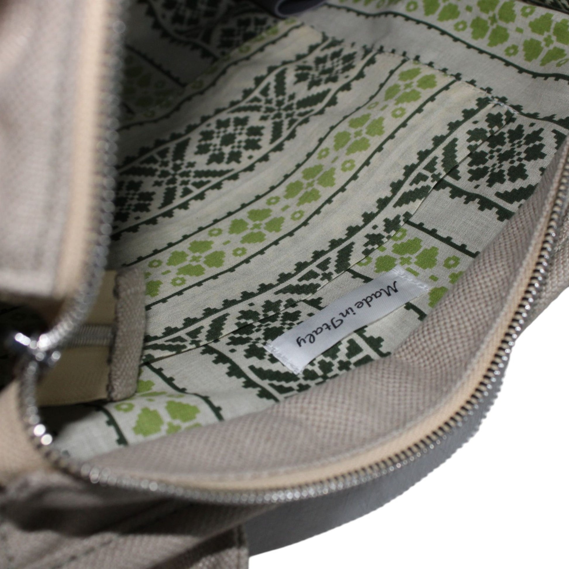 Con la sua tonalità sabbia, la Tote Roma eleva il tuo stile con un tocco di classe e la praticità di una borsa che risponde a tutte le tue esigenze. Può essere portata a mano o con la tracolla ecru regolabile, la Tote Roma ha una chiusura a zip, una tasca esterna per il cellulare e una interna per piccoli oggetti. E' anche dotata di un porta bottiglia interno creato con un elastico grigio. Made in Italy, fatta a mano. Colore: sabbia Più del 80% del materiale è ricondizionato.